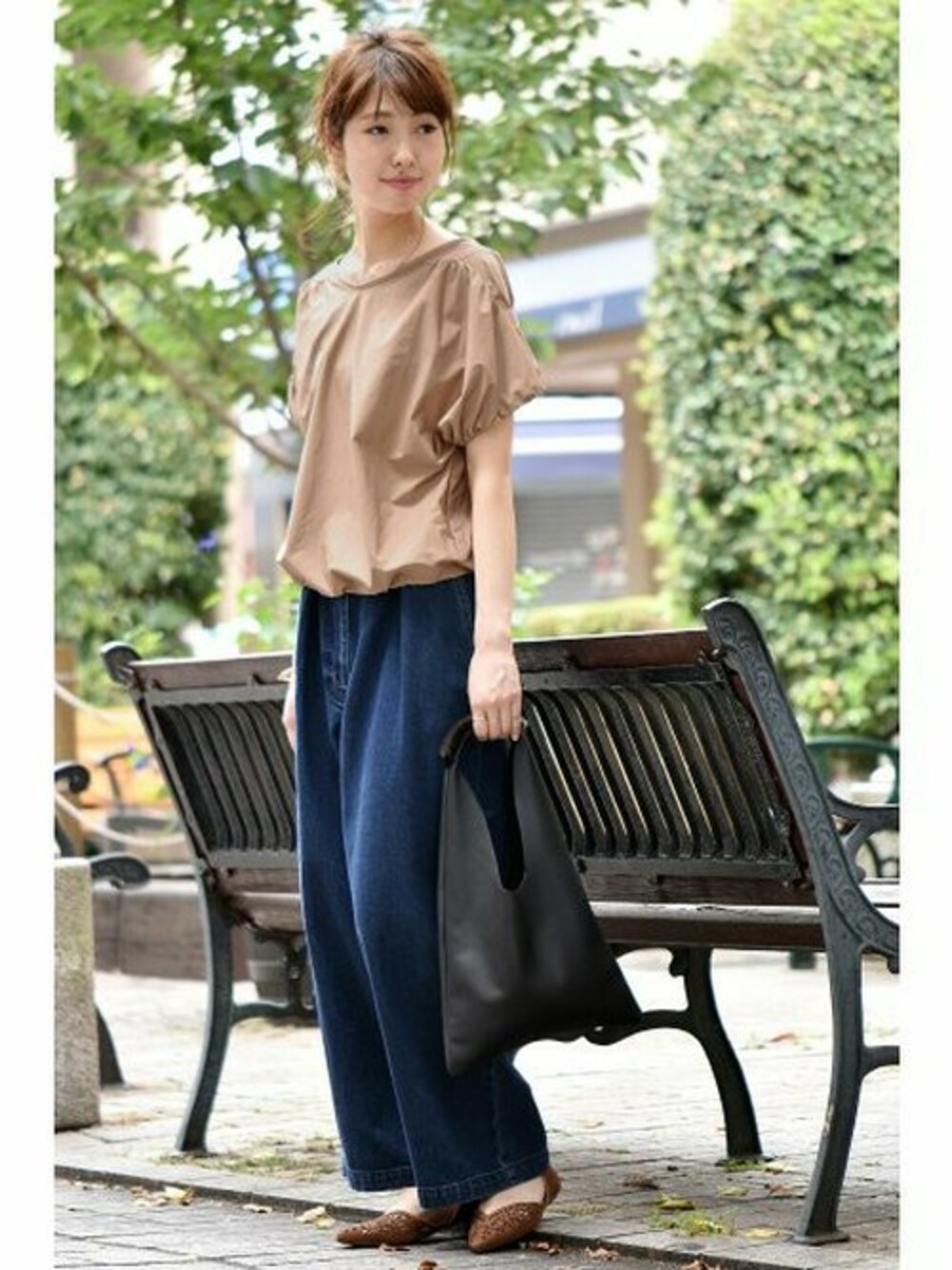 ギャザーの効いたふんわりフォルムのプルオーバー。 トレンドのベージュやキャメルのトップスは、デニムワイドパンツを合わせてゆるっと着るのがかわいい。