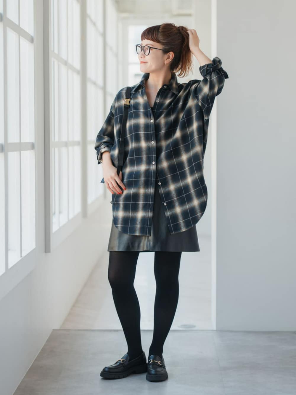 大人気のオンブレーチェックシャツがリニューアルして今年も登場! 落ち着いた配色と起毛感のある風合いが特徴的な、大人の女性にぴったりなルーズシャツ。 トレンドのミニスカートも、レザー素材ならシックな雰囲気で着こなせて◎