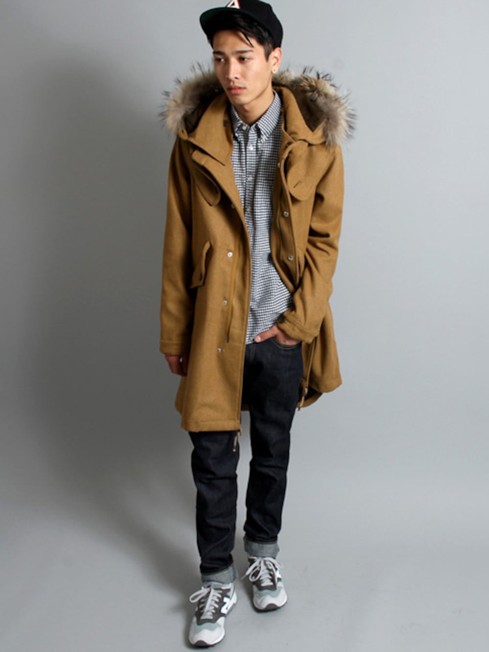 SPUスプのモッズコート「ウールカシミヤM-65モッズ コート」を使ったコーディネート