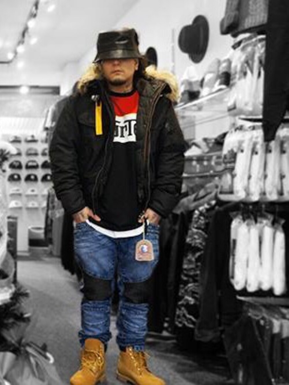 SQWAREのハット「KBETHOS PU LEATHER BUCKET HAT」を使ったコーディネート