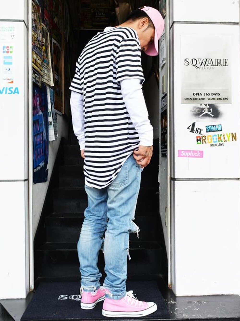 SQWAREのキャップを使ったコーディネート