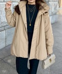 お尻が隠れる着丈で安心感のある中綿コートは 身幅も腕回りもゆったりしているので、スウェットやニットなどを着てもごわつかずに着用していただけます◎ 裾にはゴムドロスト内蔵なので、絞るとコクーンシルエットになります。 フードは取り外し可能なので、シンプルでモダンなスタンドカラーにもなります◎ 流行り廃りのないデザインは息の長いアイテムです。