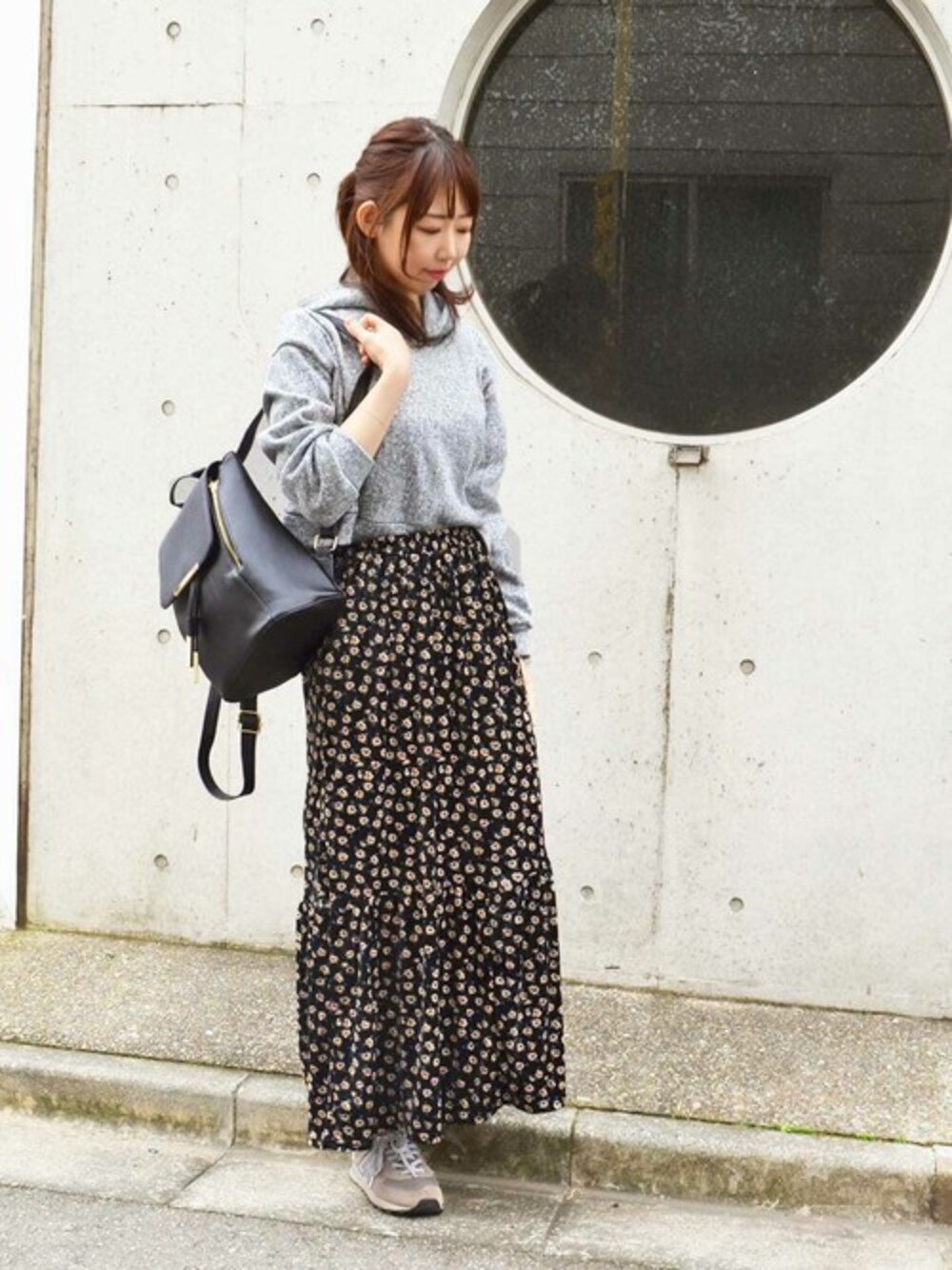 大人カジュアルなコーディネート♪ 花柄スカートはベロア地なのも魅力🌹 ウエストゴムなので履き心地も◎