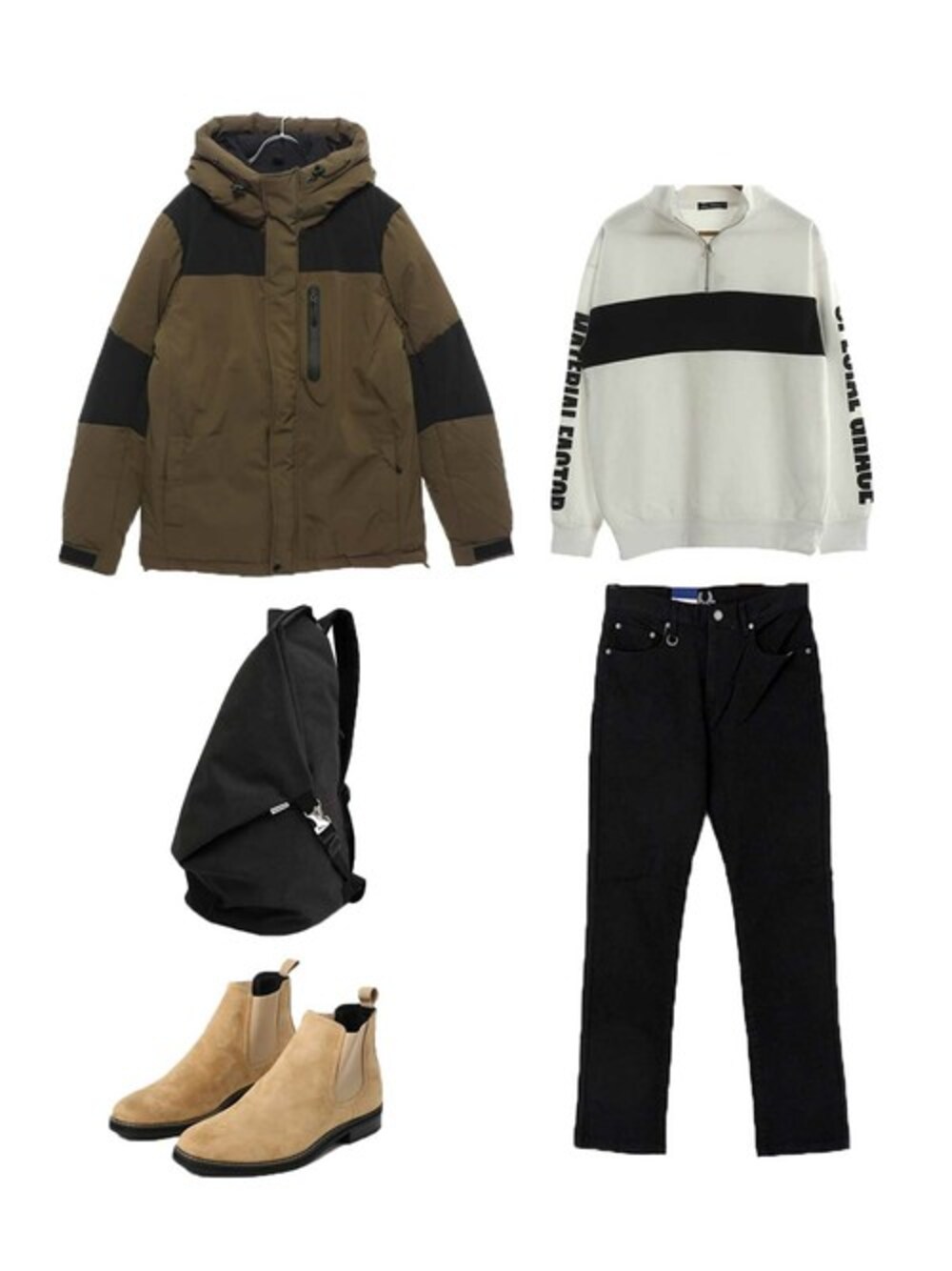 メンズのコーディネートです! アウターは中綿入りなので軽量ながら防寒性も😎 冬のアウトドアシーンにピッタリのスタイルです⛷