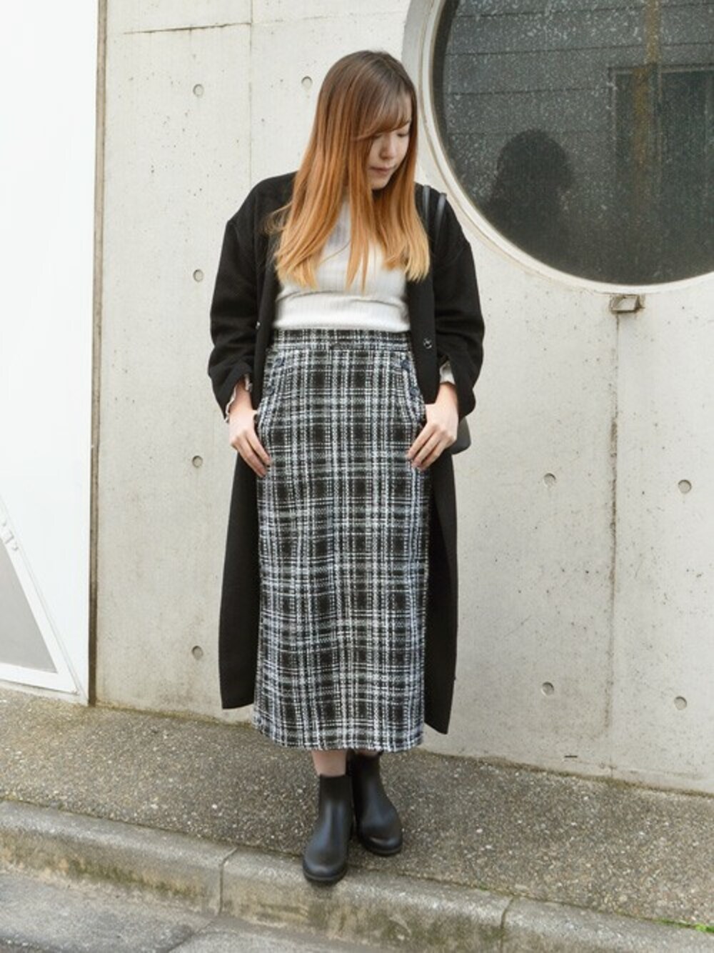 STYLEBLOCKのスカート「オーバーチェックタイトスカート」を使ったコーディネート