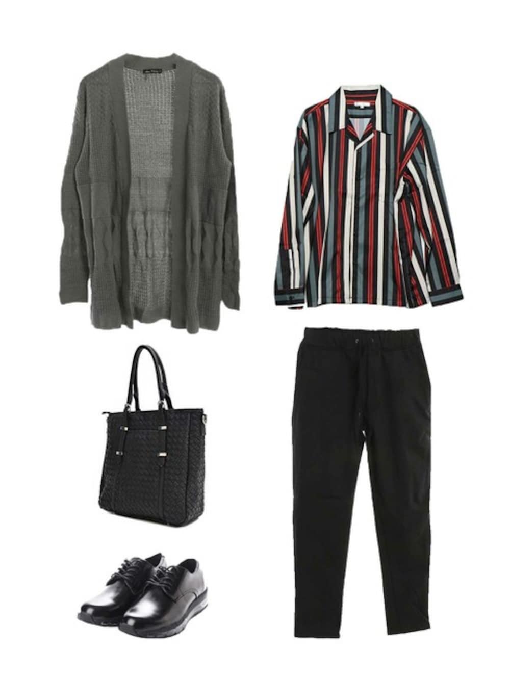 メンズのコーディネートです♪ カーディガンやアウターなどの下に着ても映える柄シャツは 重ね着をする機会が多い今の季節に特におすすめです🐶!