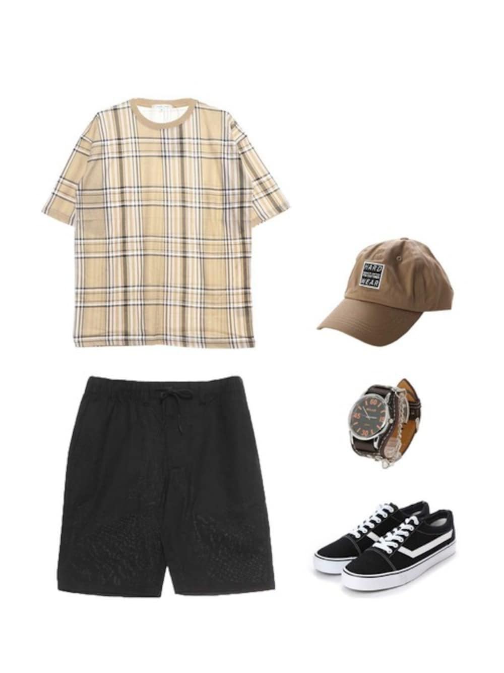 メンズのコーディネートです♪ 大きめのチェック柄がおしゃれなトップスは コーディネートのアクセントになります😉✨ 小物の色味をそろえるとスタイルに統一感が生まれますよ☆