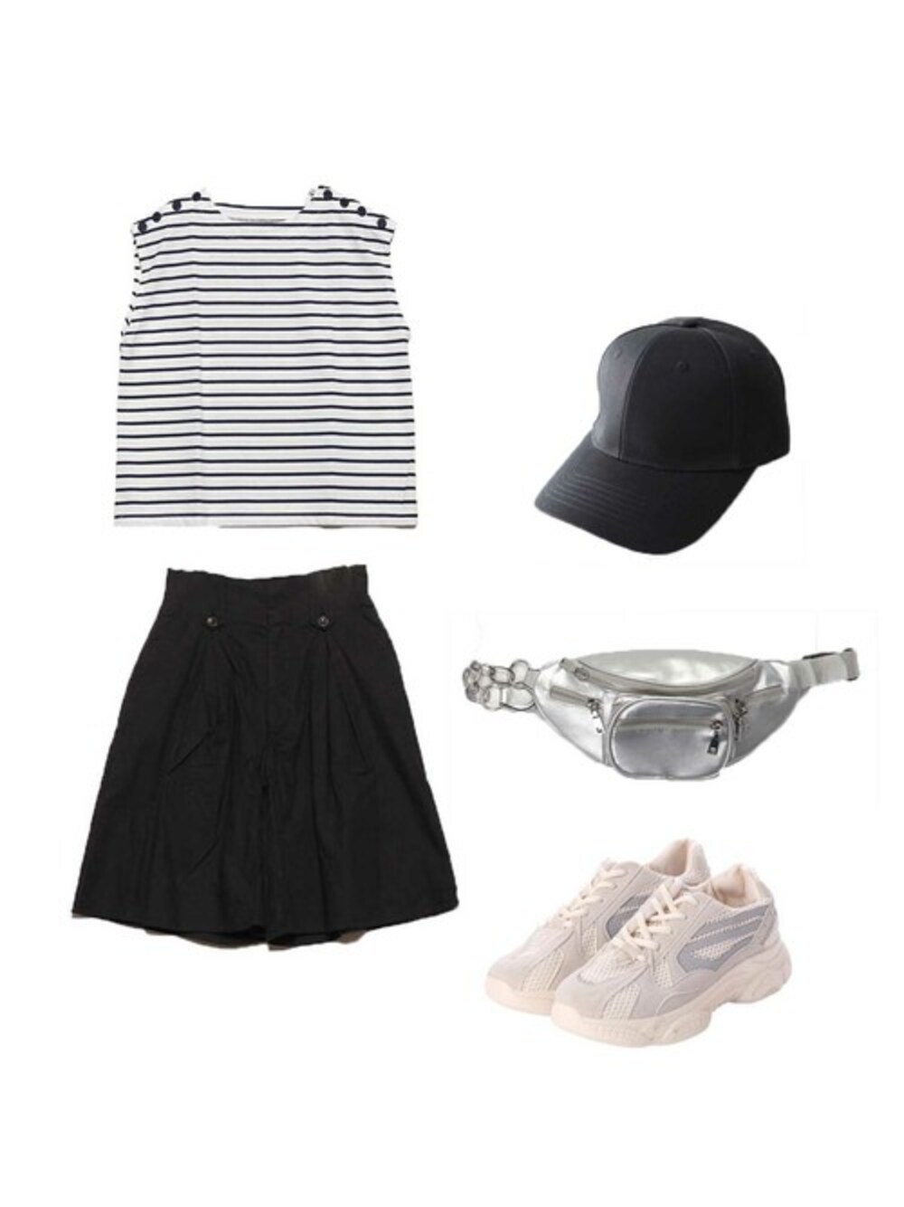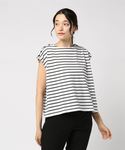 STYLEBLOCKのTシャツ/カットソー「肩ボタン先染めボーダーカットソートップス」を使ったコーディネート