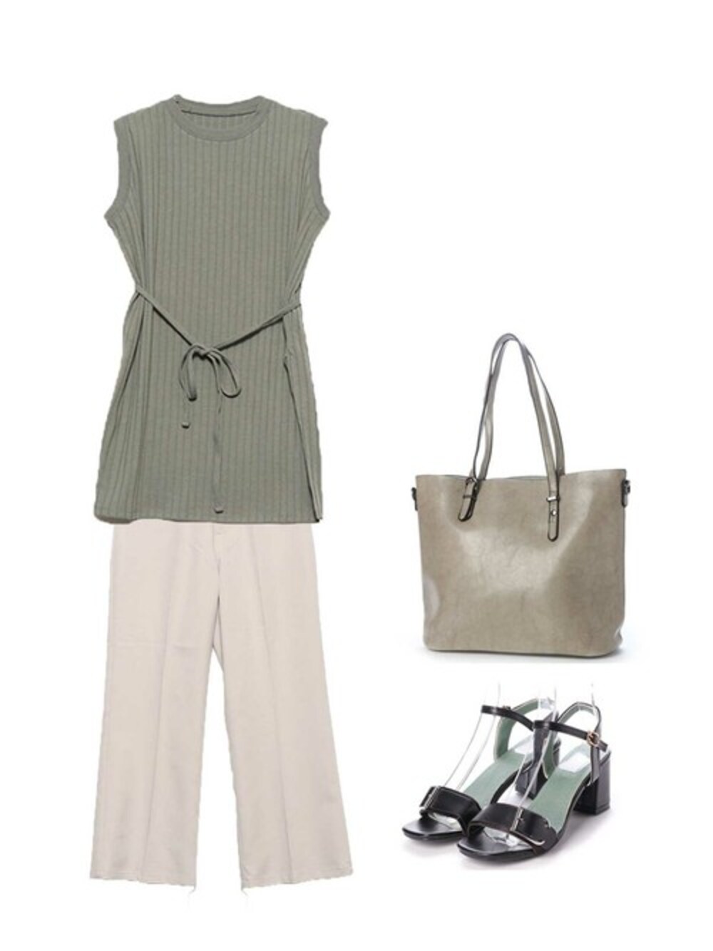 STYLEBLOCKのTシャツ/カットソー「ワイドリブノースリーブカットソー」を使ったコーディネート