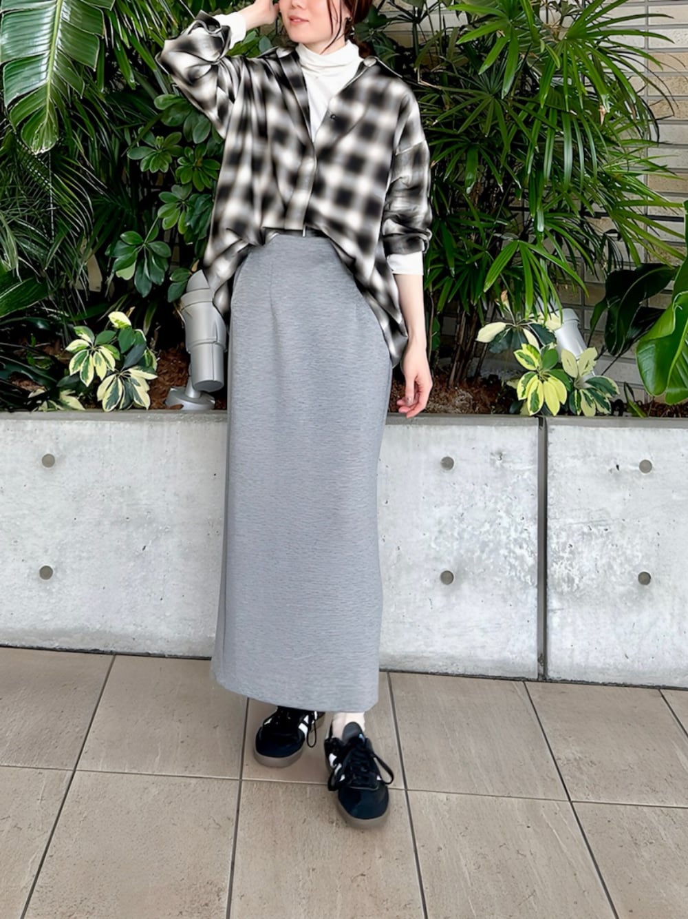 ☑︎ グラデチェックでメンズライクな抜け感✨ ☑︎ シアーベロアが叶える上品な肌見せ💖 ☑︎ ダンボール素材で快適タイトスカート🦢 今回は、チェックブラウスを主役にした秋の異素材MIXスタイルをご紹介します🍁 オンブレーチェックのシャツブラウスは、グラデーションの濃淡が魅力。メンズライクなチェック柄も、落ち感のある素材で女性らしい抜け感のある印象に仕上がっています。羽織りとしても活躍します👍 インナーには、繊細な光沢と透け感が魅力のシアーベロアハイネックプルオーバーをチョイス。上品な肌見せとクラシカルなムードをプラスしてくれます。 ボトムスは、軽やかで快適な着心地のダンボールタイトスカートを合わせました。体のラインを美しく引き立てるシンプルなデザインで、どんなトップスとも好相性です💐