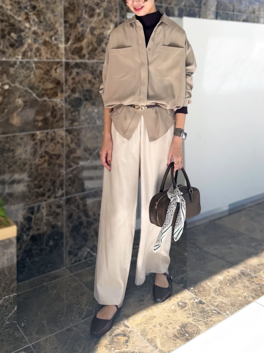 ☑︎ 微起毛の柔らかなパウダータッチ素材で心地よい肌ざわり☁️ ☑︎ 抜け感のあるシルエットにシャープな襟元で「きちんと感」を両立✨ ☑︎ 一枚着でも羽織りでも使える、長く愛せる万能デザインアイテム👔 ICHIE(イチエ)のパウダーポプリン_パウダータッチシャツです😊 微起毛のある「パウダーポプリン」素材を使用しており、肌になじむようなやわらかさとパウダータッチな質感が魅力です💕 若干のとろみと落ち感のあるシルエットが抜け感を演出しつつ、襟元やカフスのシャープなディテールが、大人の女性にふさわしいきちんと感をプラスしてくれます🙌 長時間着用してもストレスフリーな着心地で、デイリー使いからお仕事シーンまで幅広く活躍🌟 一枚で主役にするのはもちろん、季節の変わり目には羽織りとしても重宝する万能な一着です🌸 上質な素材感とタイムレスなデザインで、ワードローブに長く寄り添ってくれるアイテムです🎀