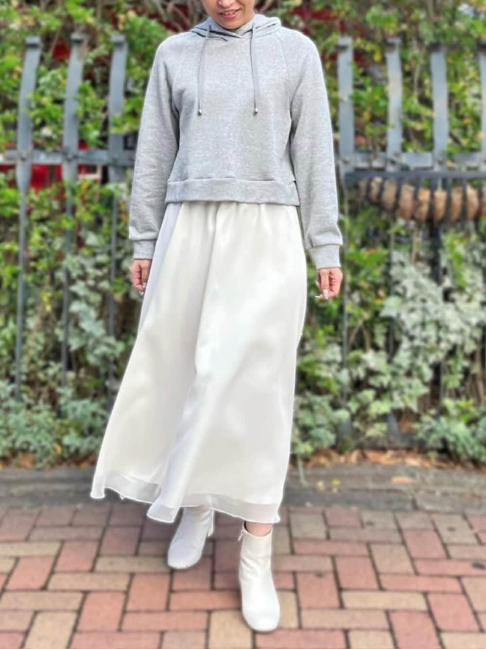 ☑︎ 軽やかな透け感とボリューム感🌷 ☑︎ ミディアム丈でスタイルアップ👆 ☑︎ オールシーズン着用可能💯 ICHIE(イチエ)のソフトオーガンスカートです😊 軽やかな透け感とふんわりとしたボリュームが魅力のソフトオーガンジー素材を使用したスカートです💕 ミディアム丈でスタイルアップ効果も期待でき、オーガンジーの質感が女性らしさを演出してくれます🙌 肌触りが良く、シワになりにくいのが嬉しいポイントです🌟 地肌までは透けにくく、オールシーズン着用可能なため、カジュアルからエレガントまで、様々なシーンに大活躍します🎀