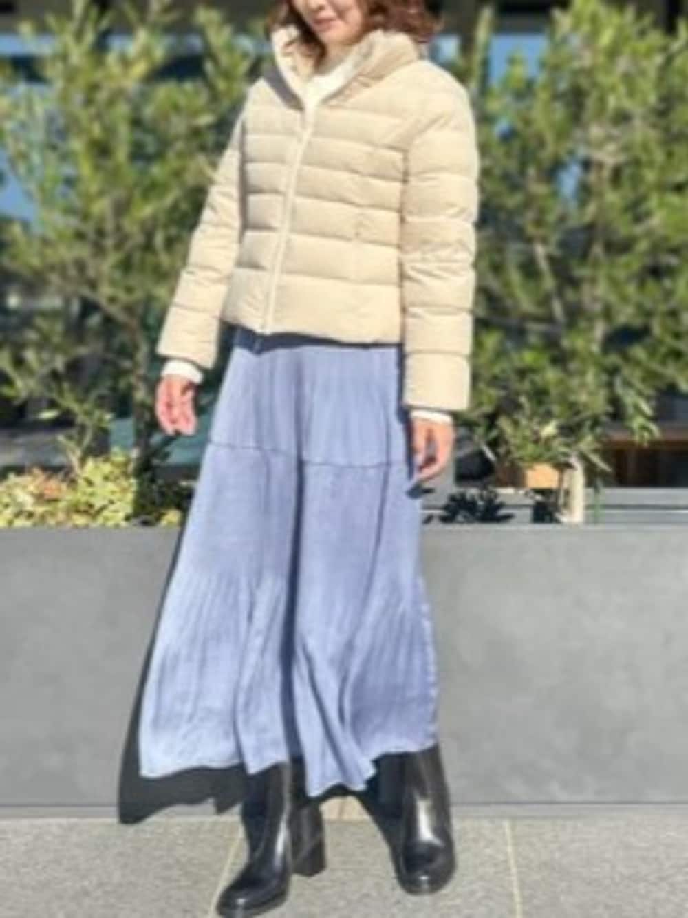 〈ストレッチダウンⅡ×ルーナサテンスカート〉 ◆軽やかな着心地と伸縮性のある素材が動きやすさを叶え、すっきりとしたシルエットでカジュアルになりすぎず、STRAWBERRY-FIELDSらしい上品さを保ちます。 ◆ファーは取り外し可能で、シーンや気分に合わせて印象チェンジができるのも魅力。 ◆上品なツヤを放つルーナサテンを使用した、軽やかに揺れるランダムプリーツスカート。 ◆ウエストはすっきりと仕上げつつ、ぐるりとゴムで履き心地も快適。裾へ向かって優雅に広がるシルエットで、身体のラインをきれいに見せてくれる一枚です。 ◆女性らしさとエレガンスを兼ね備えた、シーズン問わず使える万能プリーツスカートです。