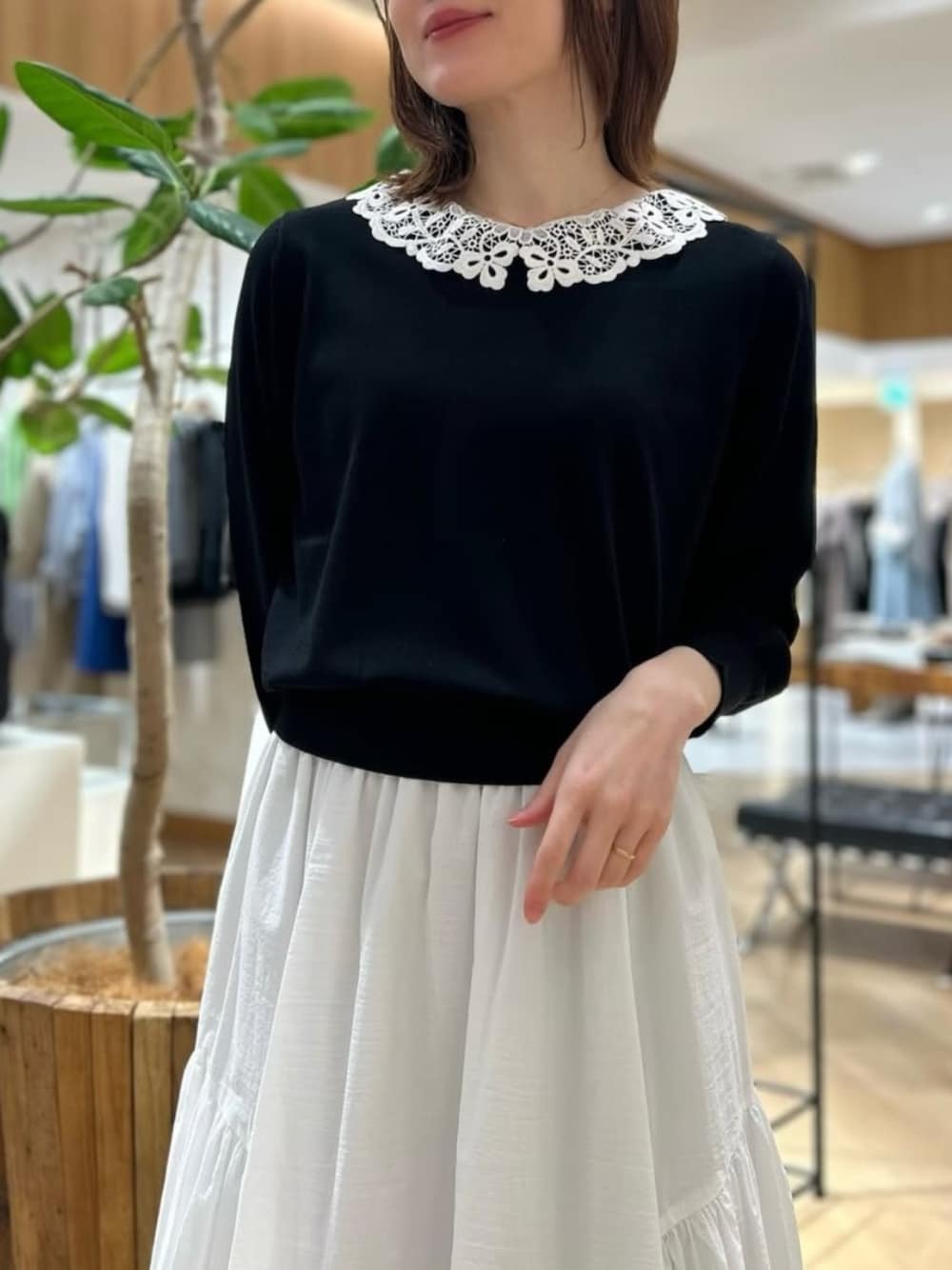 STRAWBERRY-FIELDS(STRAWBERRY-FIELDS)のニット/セーター「アメリ―ストレッチ_レース衿ニット」を使ったコーディネート