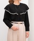 *ライトデシン しなやかで落ち感のあるライトデシン素材を使用した、ケープカラーブラウス。 ケープのように広がる襟デザインが顔まわりを華やかに演出し、上品で女性らしい印象を与えます。 襟まわりとカフス先には華奢なレースをあしらい、袖のふんわりとしたボリューム感長めのカフスもポイント◎ 軽やかな着心地で、適度な落ち感があり、動くたびに美しいドレープが生まれるのも魅力。 一枚で着映えし、きれいめからお出かけスタイルまで幅広く活躍するアイテムです。 洗濯:洗濯機使用可能(ネット使用)