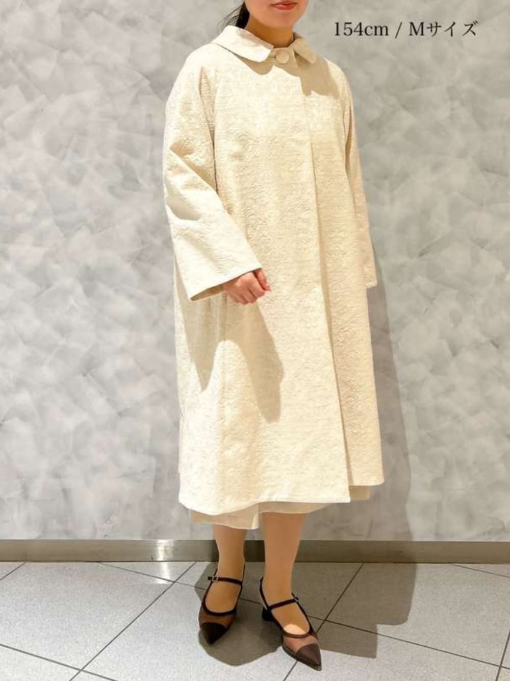 *ミリ―ジャガード ジャガード織りならではの緻密な立体感と、どこかヴィンテージライクな趣が魅力の主役級スプリングコート。 一目で上質さが伝わる素材感と、ストロベリーフィールズらしいフェミニンなシルエットが融合した、特別な一着です。 洗濯:ドライクリーニング