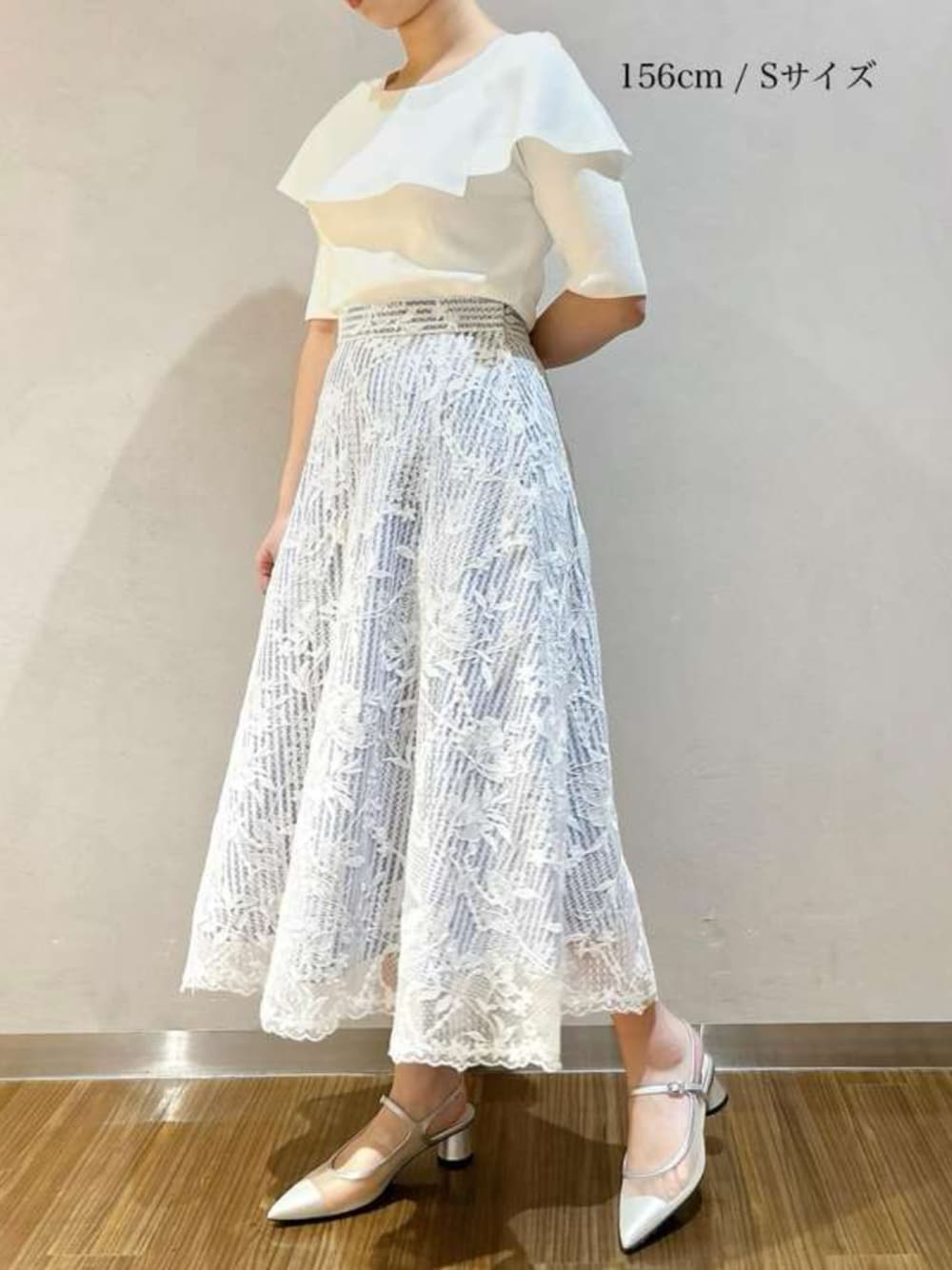 *ラッピングストライプ ストライプの下地と、可憐なレースの共演。心ときめく「ラッピングストライプ」スカート。 一目見て心奪われる、計算されたテクスチャーの美しさ。 繊細なスカラレースにストライプ柄を組み合わせた、唯一無二の存在感を放つ主役級スカートが仕上がりました。 洗濯:手洗い可能