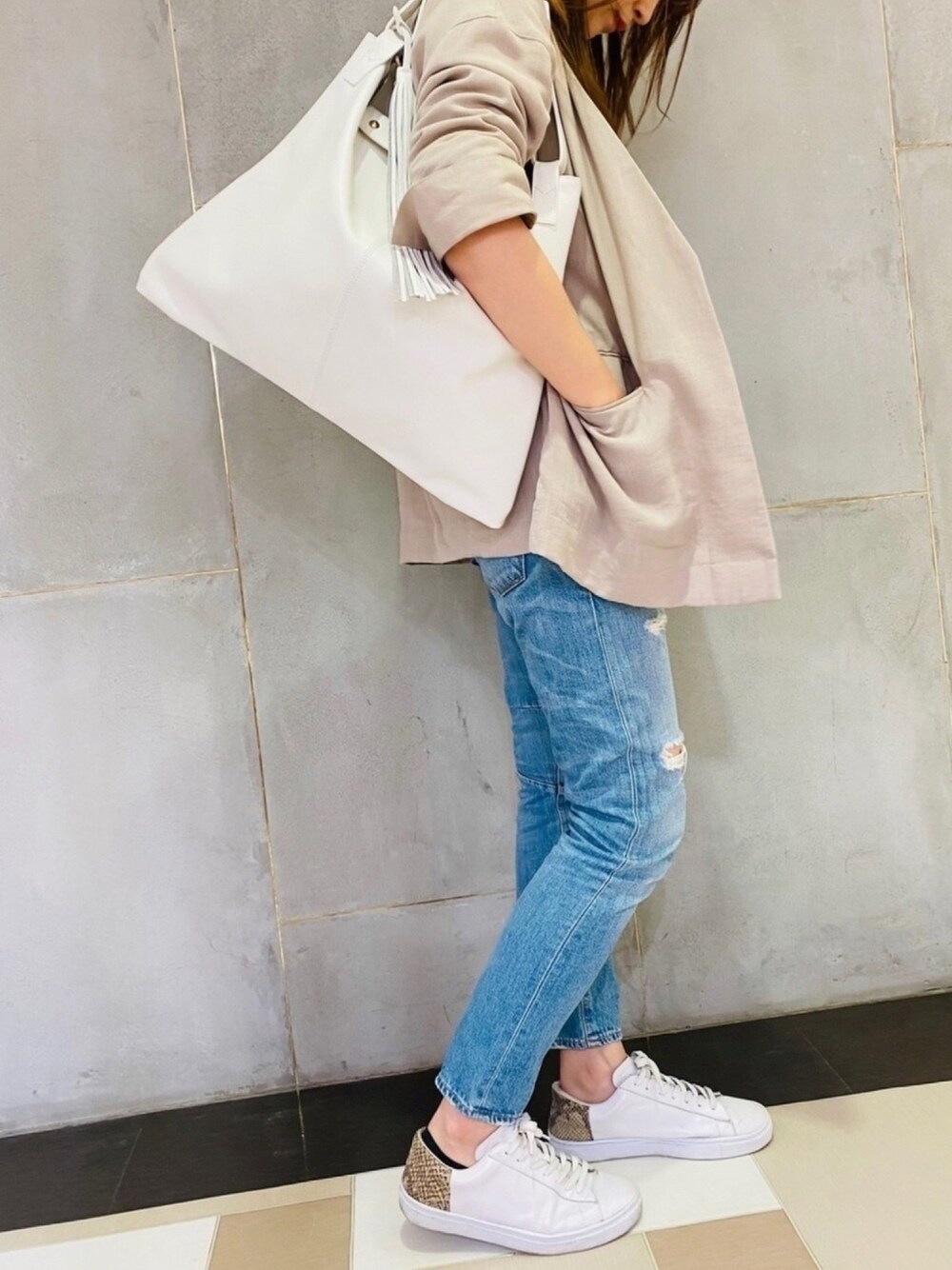 CHRISTIAN VILLAのトートバッグ☆ オンオフどちらにも使える形、サイズ感でヘビロテ間違いなし🙆♀️ ハンドルの長さを変えられるのもポイントです!