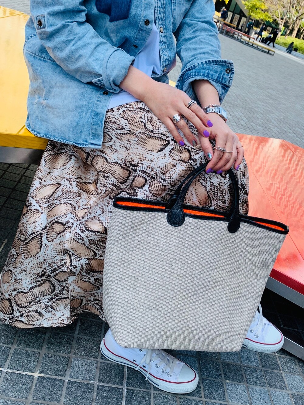 【MARCO MASI】マルコ マージ made in ITALY 柔らかいコットン素材で軽い&丈夫⭐︎ 内側のビビッドオレンジがチラッと見えてお洒落 カゴバッグじゃない変化球で、この夏を楽しみましょう!