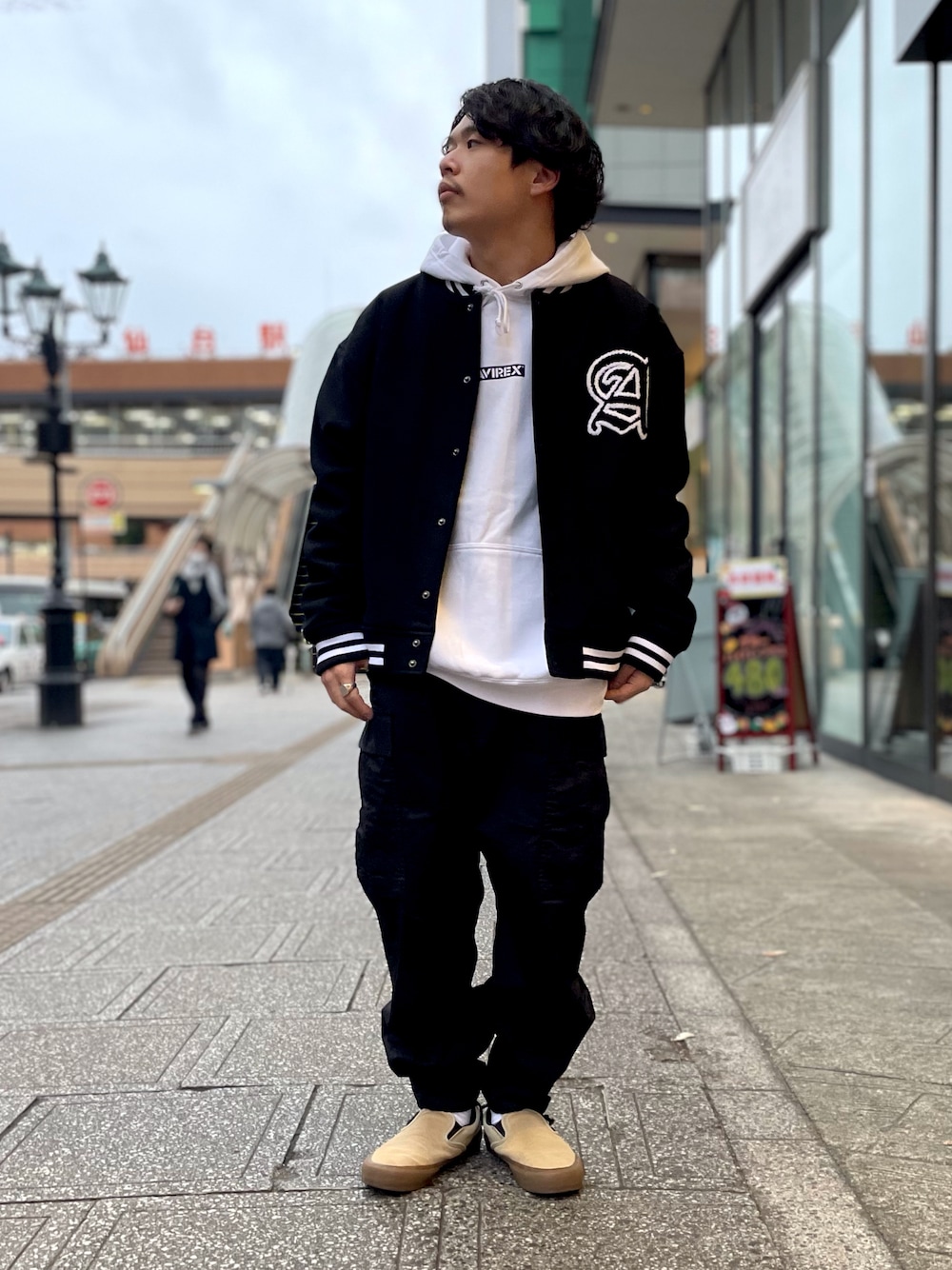 Syunのスタジャン「【直営店限定】スタジアムジャケット / STADIUM JACKET AVX / アヴィレックス / AVIREX」を使ったコーディネート