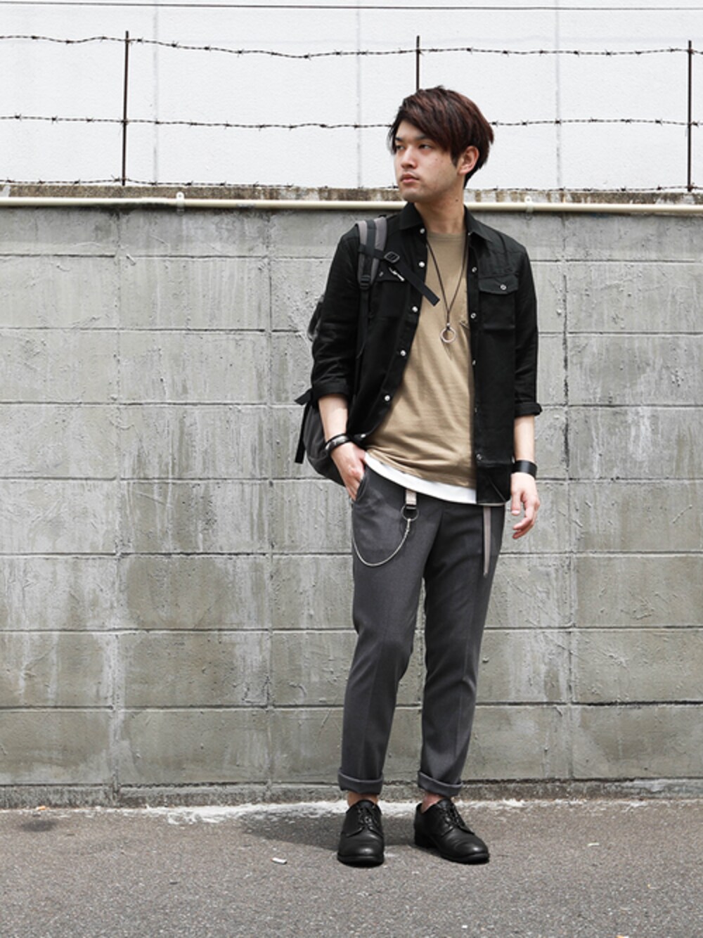 落ち感ある素材のウェスタンシャツ×ドライウェザーのトラウザーズ。 インナーや小物は淡い色合いのアイテムでまとめた、大人カジュアルスタイルに。 instagram : @shu_session