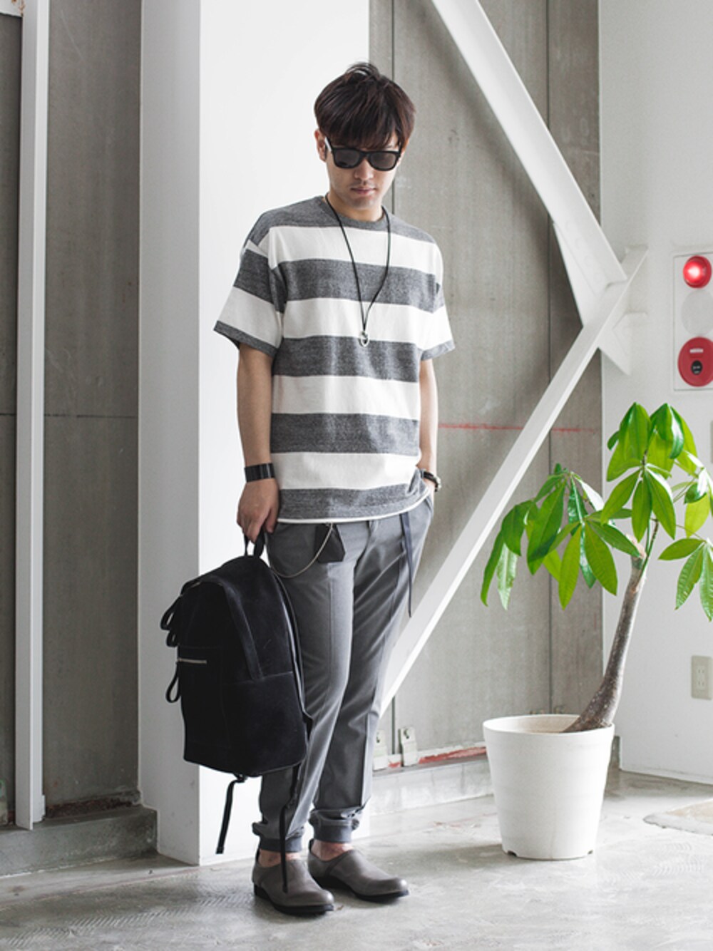 リラックス感あるニットボーダーにスポーティなジョグトラウザーズ。 上品なバックやアクセサリーをMIXして、大人カジュアルスタイルに。 instagram : @shu_session