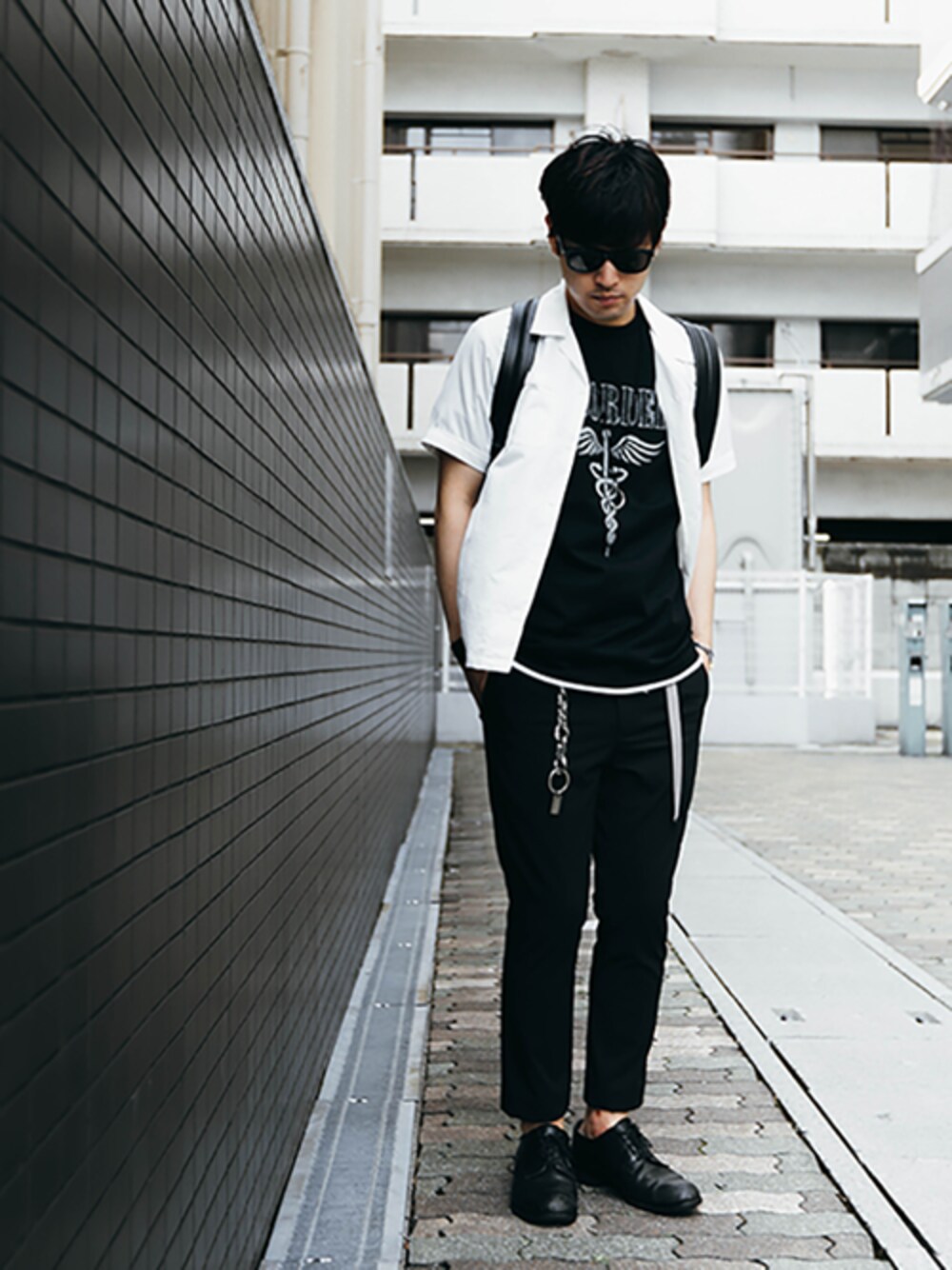 こなれた風合いの開襟シャツ×軽い履き心地のテーパードスラックス。 プリントTeeやロングベルトなどのカジュアルアイテムをMIXして、抜け感を演出しました。 instagram : @shu_session
