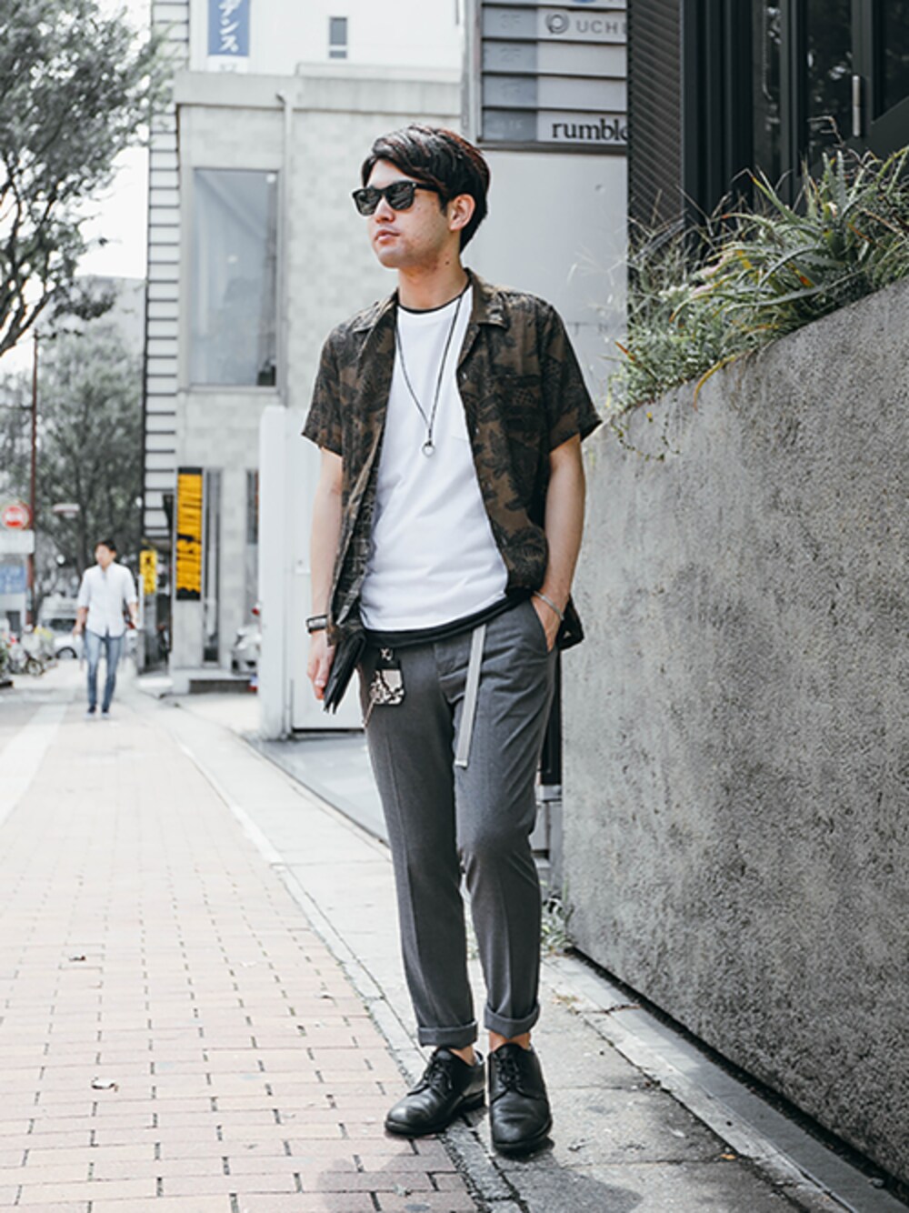 リゾートライクなボタニカル柄のオープンカラーシャツ。 無地Teeやスラックスなどの綺麗めアイテムをMIXして、大人カジュアルスタイルに。 instagram : @shu_session