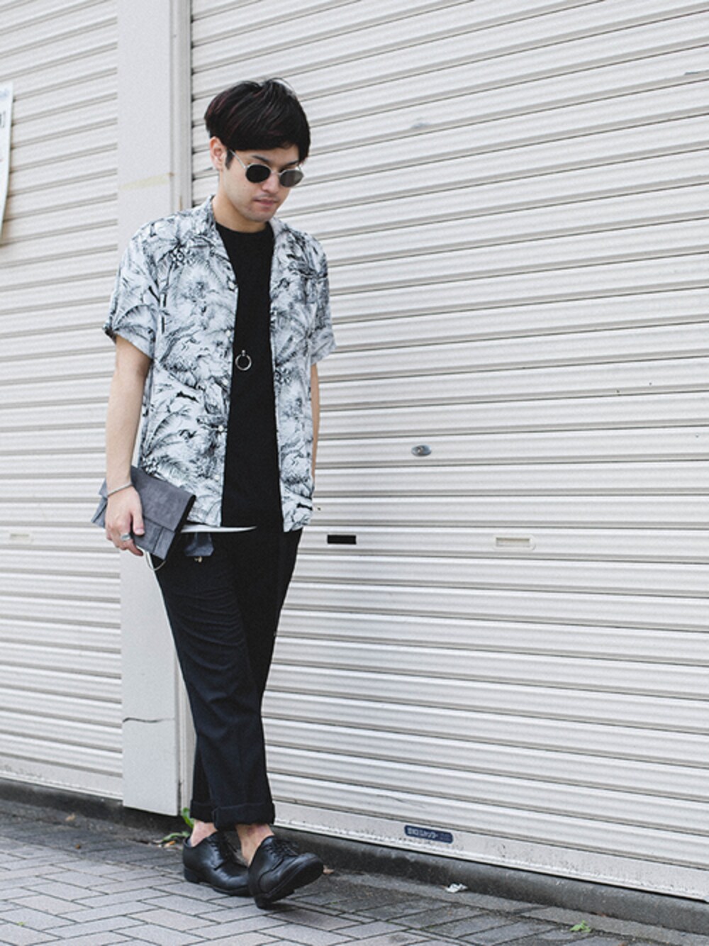 ひやっとした着心地が持ち味のレーヨンクレープ素材のアロハシャツ。 ユルめの雰囲気のスラックスを合わせた、キレイめカジュアルスタイルに。 instagram : @shu_session