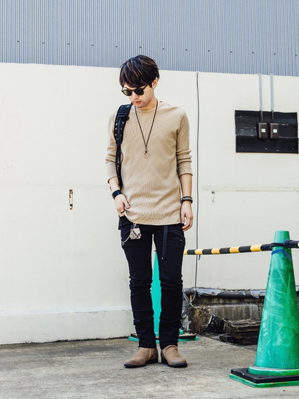 ワッフル地のロングカットソー×スリムカーゴパンツ。 小物はBEGで統一して、シンプルなカジュアルスタイルに。 instagram : @shu_session