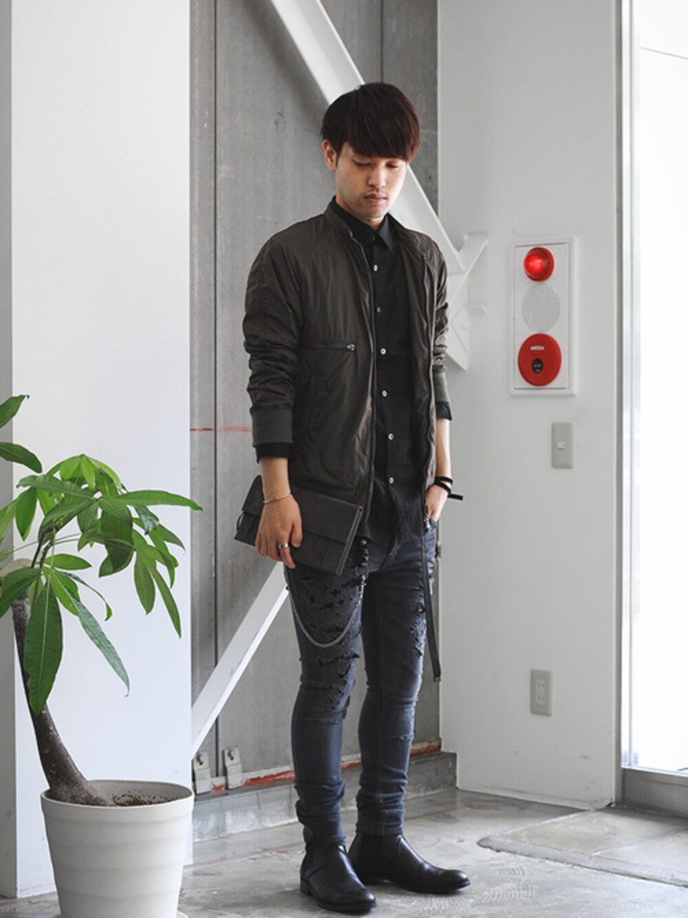 ストリートライクに仕上げた新型のボンバージャケット×スリムシルエットのクラッシュデニム。 キレイ目シャツや革小物をMIXして、大人カジュアルスタイルに。 instagram : @shu_session