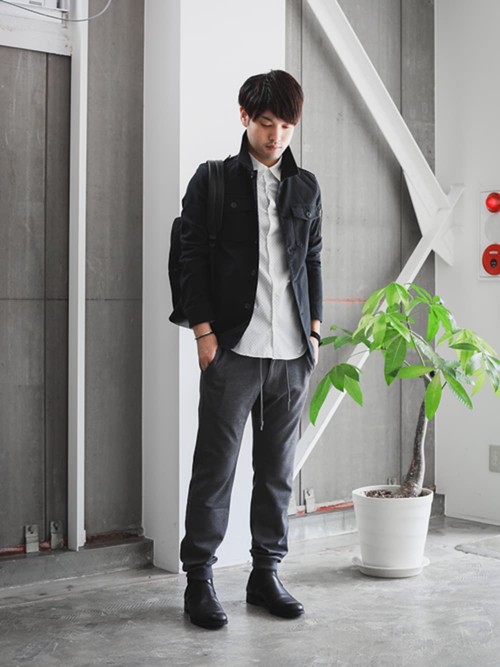 こなれた風合いのミリタリージャケット×WHTのドットシャツ。 トラックパンツを合わせて、大人休日スタイルに仕上げました。 instagram : @shu_session