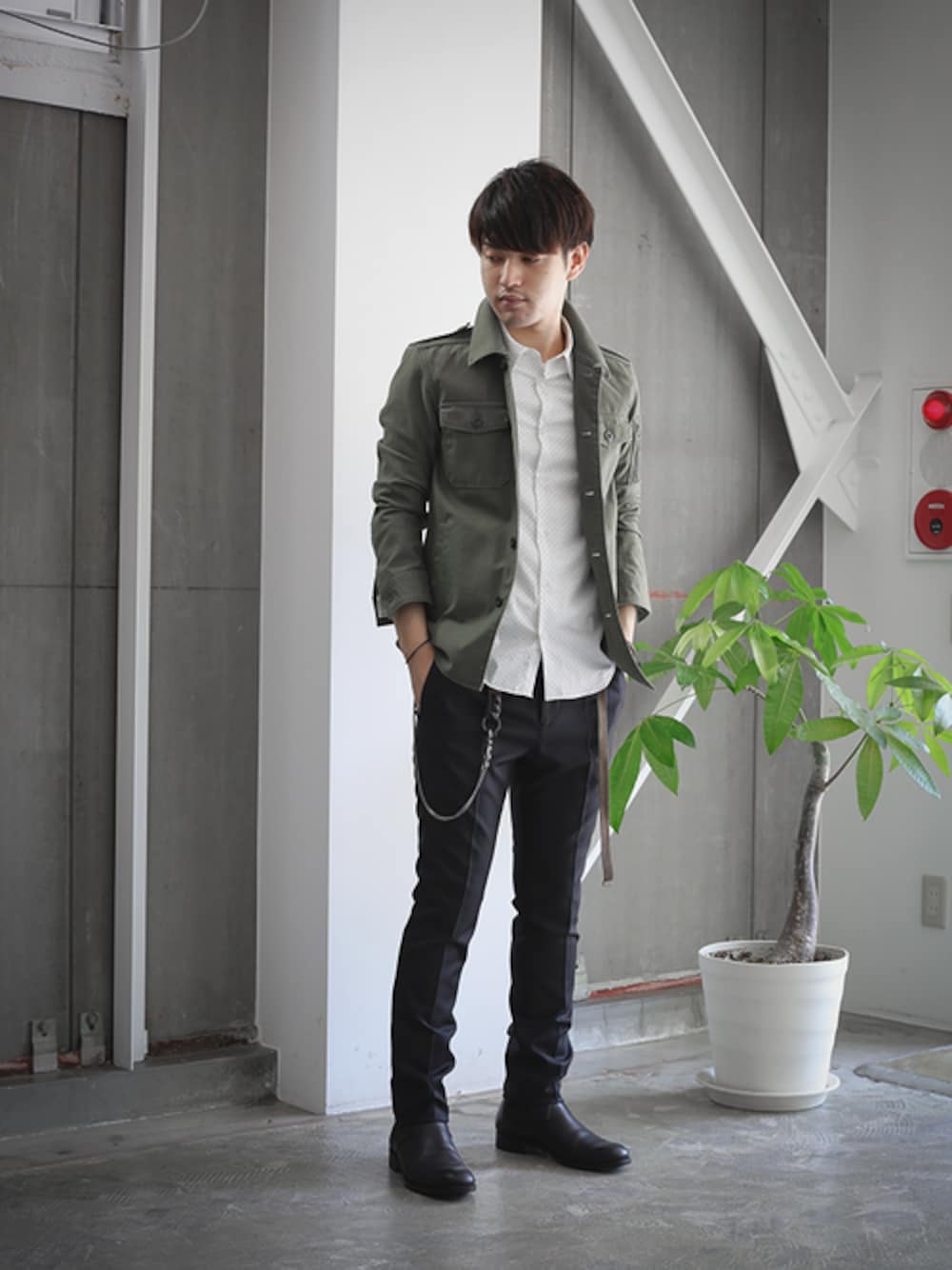 SHU KAWASAKIのミリタリージャケット「M1943 CLOTH×BIO WASH ミリタリーシャツ」を使ったコーディネート