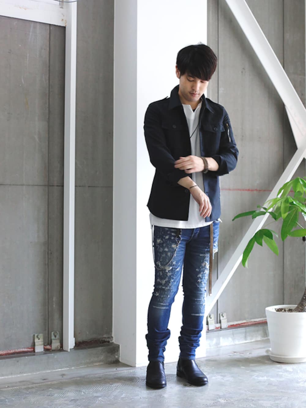 スタイリッシュシルエットの新型のミリタリーシャツ。 スキッパーTeeやクラッシュジーンズで抜けのある、大人カジュアルスタイルに。 instagram : @shu_session