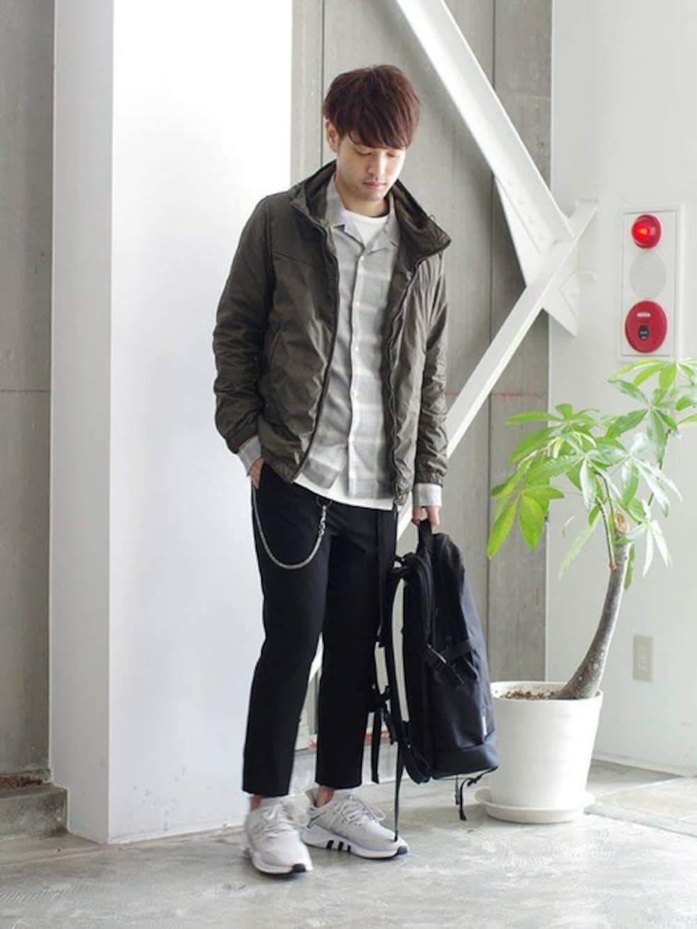 ナイロン素材のフーデットパーカー×ストレッチトラウザーズ。 オープンカラーシャツやロングカットソーで抜けのある印象に。 instagram : @shu_session