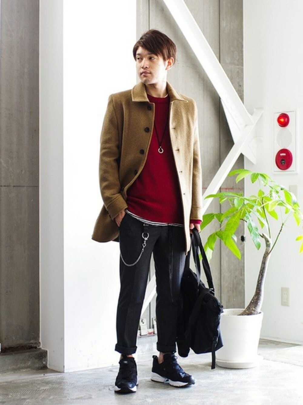 正統派デザインのステンカラーコート。 鮮やかカラーのニットで、大人カジュアルスタイルに。 instagram : @shu_session