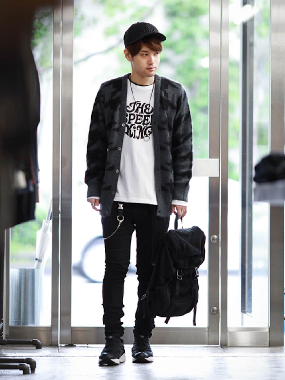 羽織に最適なハウンドトゥース柄のニットカーディガン。 キャップやロゴTeeをMIXしてストリート感あるスタイルに。 インスタ毎日更新中 ➡︎ @shu_session