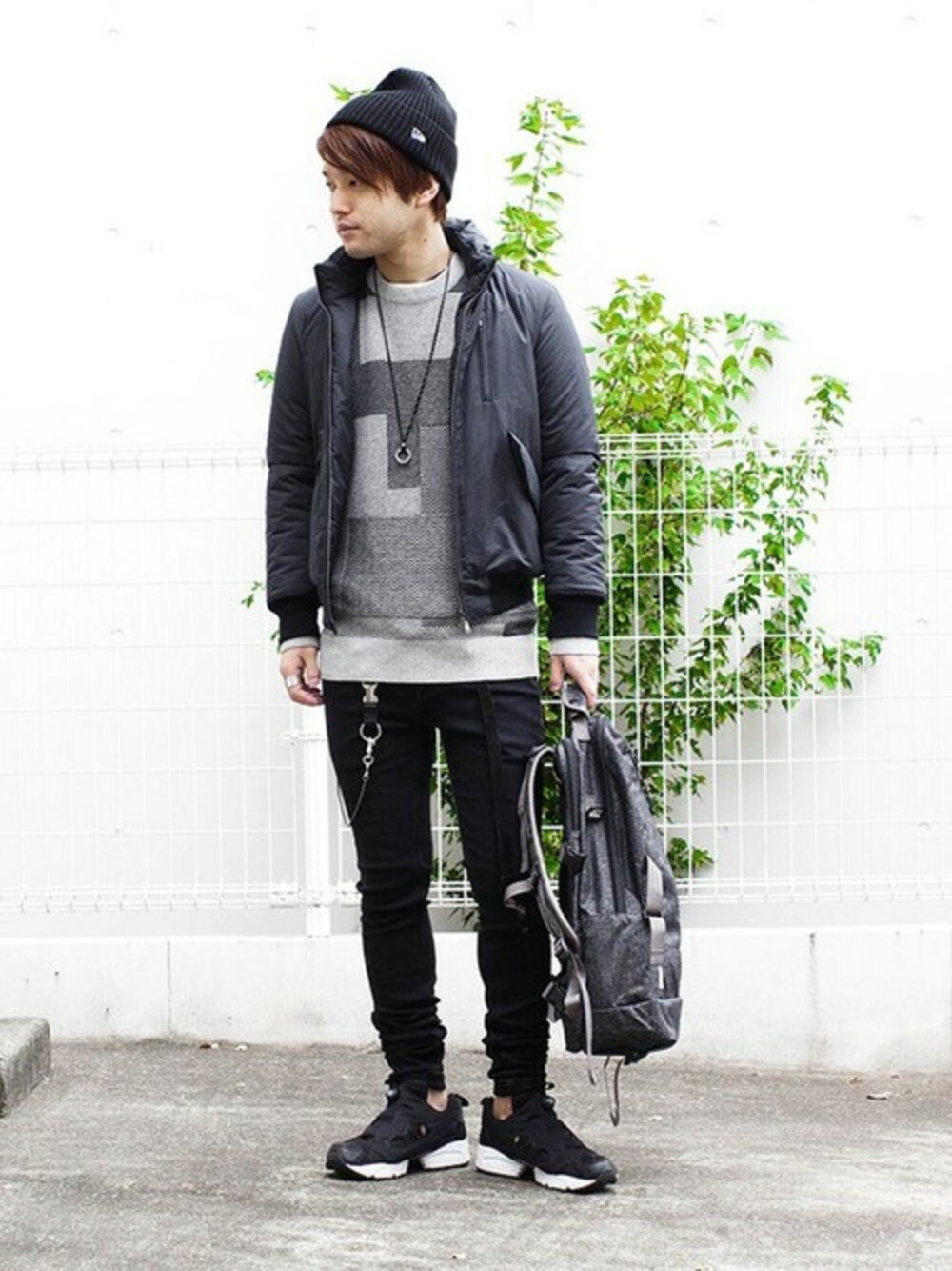 軽量なタスランナイロンを使ったハイネックブルゾン×ウォッシュ加工の黒スキニー。 ランダムパターンのニットをMIXしてモードストリートスタイルに仕上げました。 インスタ毎日更新中 ➡︎ @shu_session
