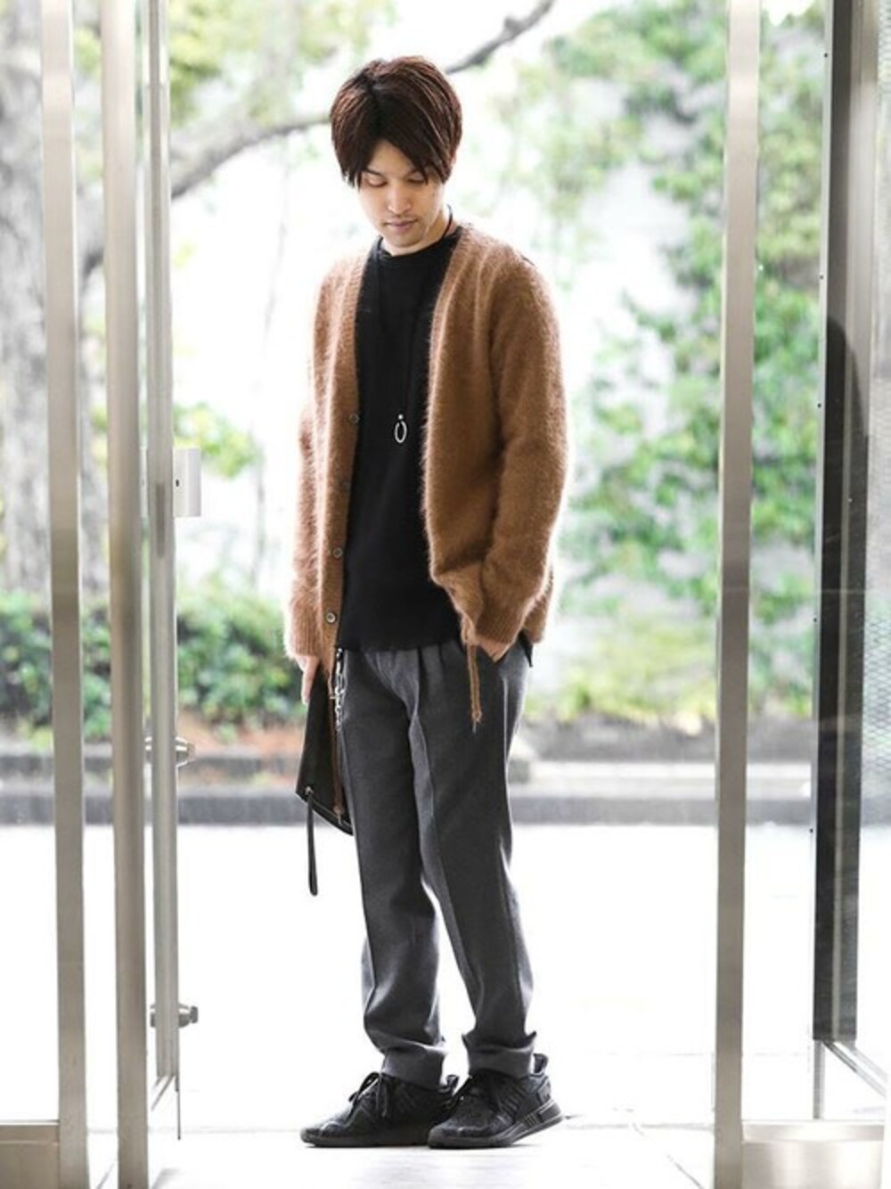 アンゴラを使ったシャギーカーディガン。 グレーの2タックパンツでラフな印象に仕上げました。 instagram : @shu_session