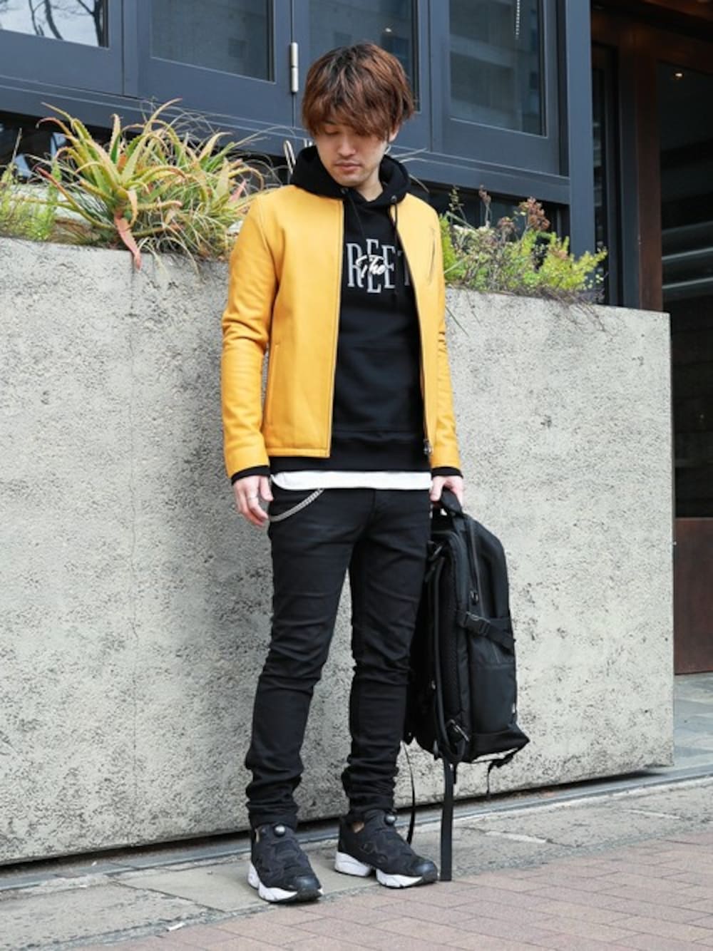 春らしい鮮やかカラーのライダースジャケット。 インナーやボトムはブラックでまとめてメリハリある印象に。 instagram➡︎ @shu_session