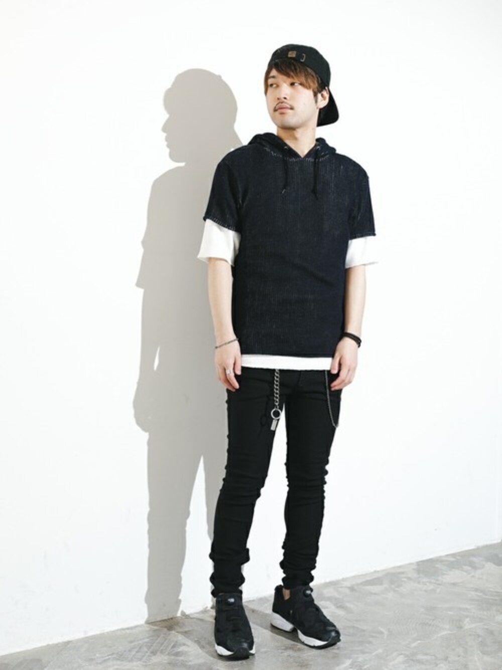 半袖ニットと7分袖ニットのレイヤードスタイル。 ラフな合わせ技でストリートな雰囲気に。 instagram➡︎ @shu_session
