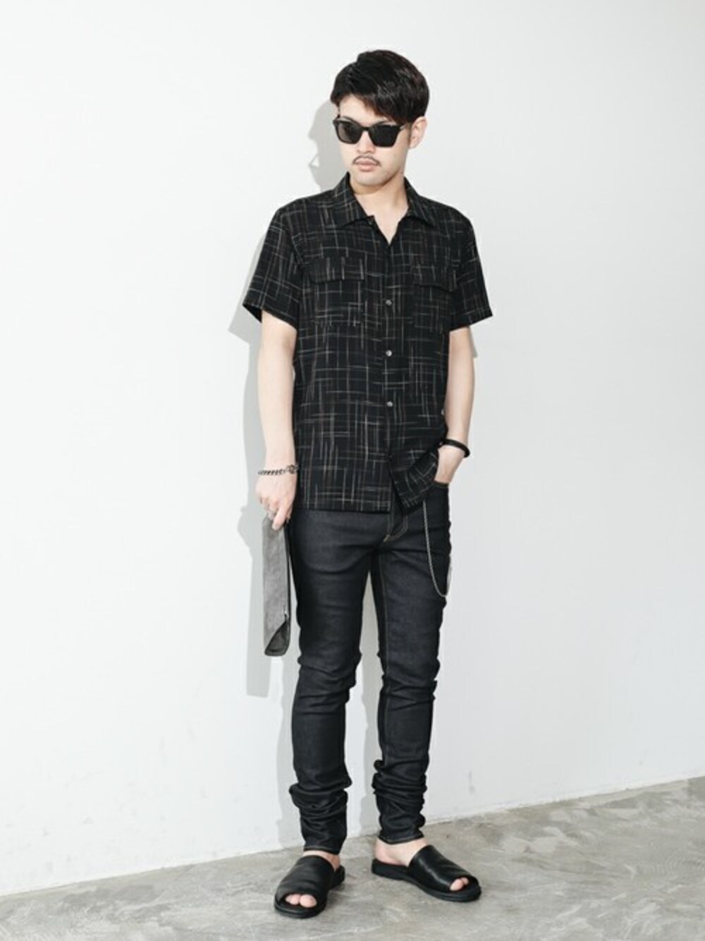 シャツ×デニムのシンプルスタイル。 足元はサンダルで合わせて夏らしさを演出。 instagram➡︎ @shu_session
