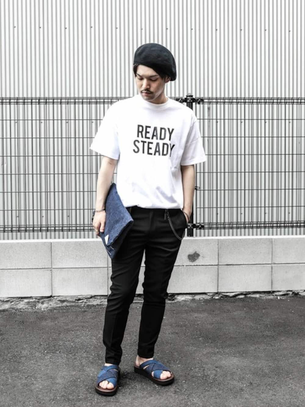 SHU KAWASAKIのスラックス「P/R STRETCH DRY WEATHER アンクルカットトラウザーズ」を使ったコーディネート