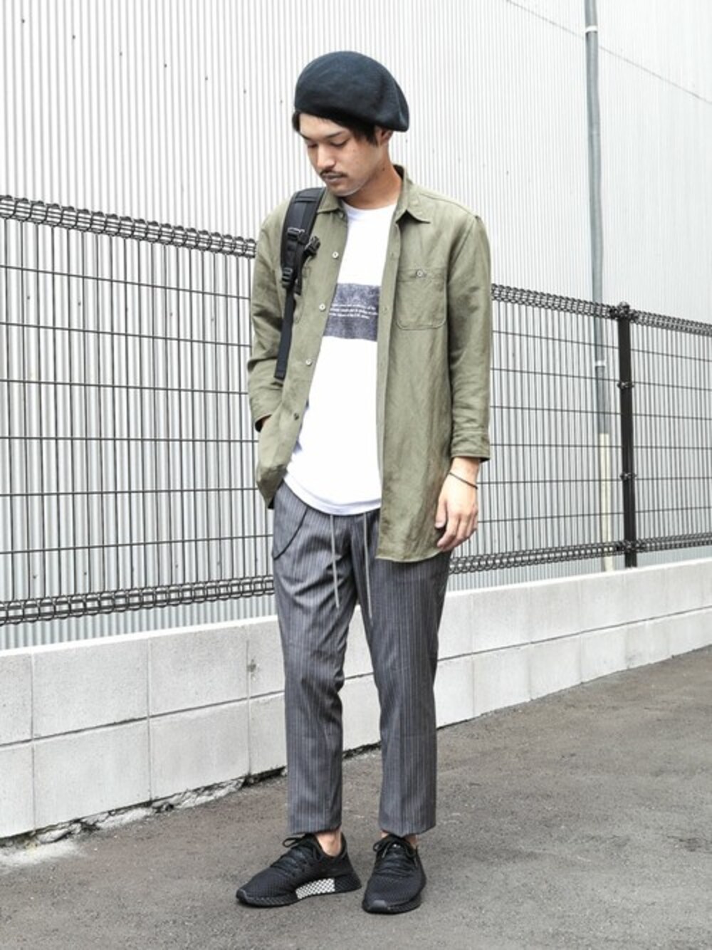 カーキ×グレーの淡いトーンで作る大人カジュアルスタイル。 小物をブラックでまとめてスタイリングにメリハリを付けました。 instagram➡︎ @shu_session