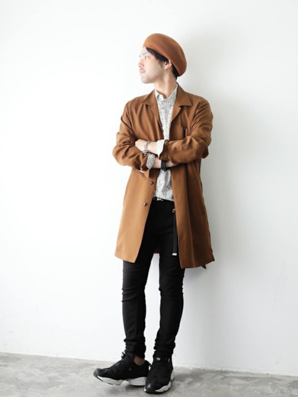 ボタニカル柄のシャツを使ったタックインスタイル。 羽織にはブラウンシャツコートをMIXして秋らしい雰囲気のスタイルに。 instagram➡︎ @shu_session