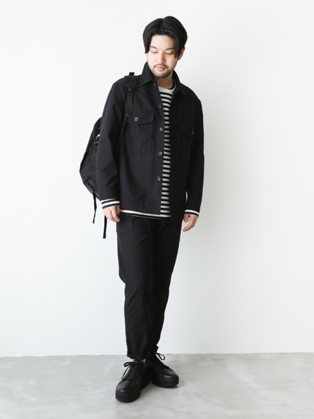 SHU KAWASAKIのミリタリージャケット「C/CORDURA MIL BACK SATIN シャツブルゾン」を使ったコーディネート