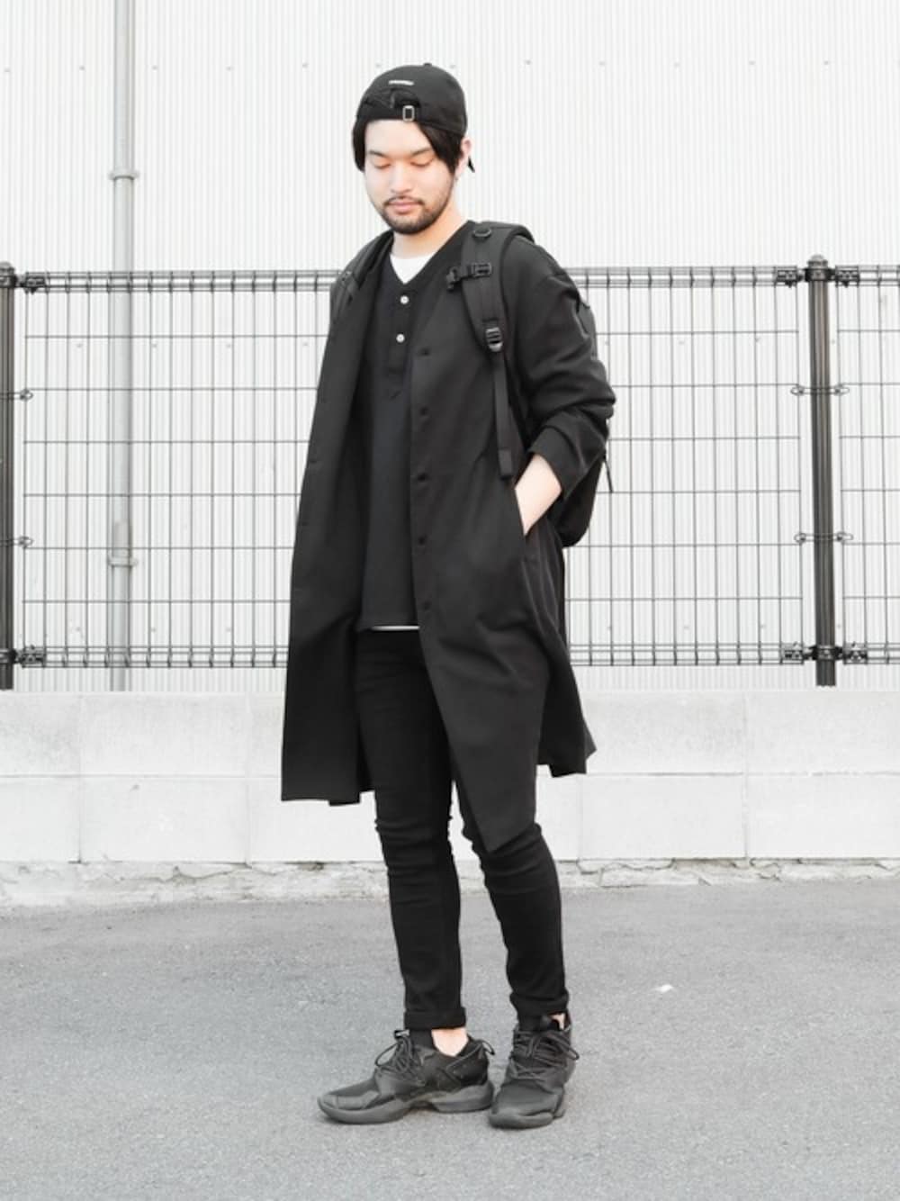 ブラックのワントーンコーデ。 ニュアンスの異なるブラックでまとめて 軽さを出したスタイリッシュコーデに。