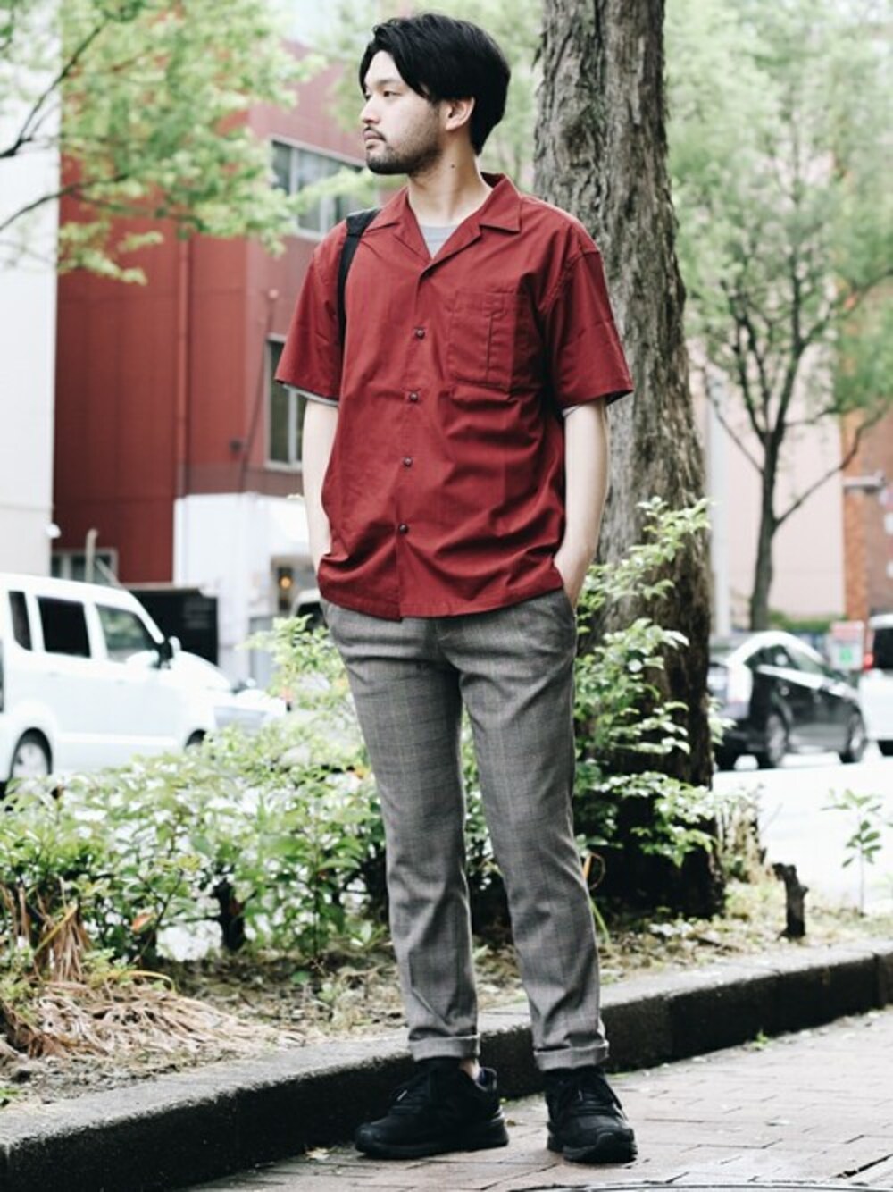 半袖シャツはチェック柄のトラウザーズで合わせて、 品良く着たい。 チェック柄のトラウザーズを合わせることでラフになりすぎない、 夏の大人スタイルの完成。