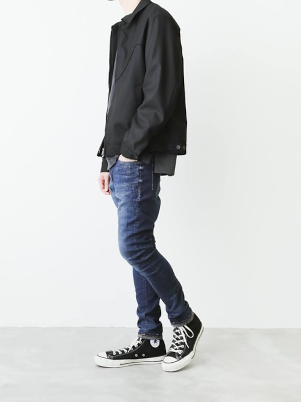 先日発売になった限定のスキニーデニムのスタイル。 トップスにボリュームを持たせてメリハリのあるコーディネートに。