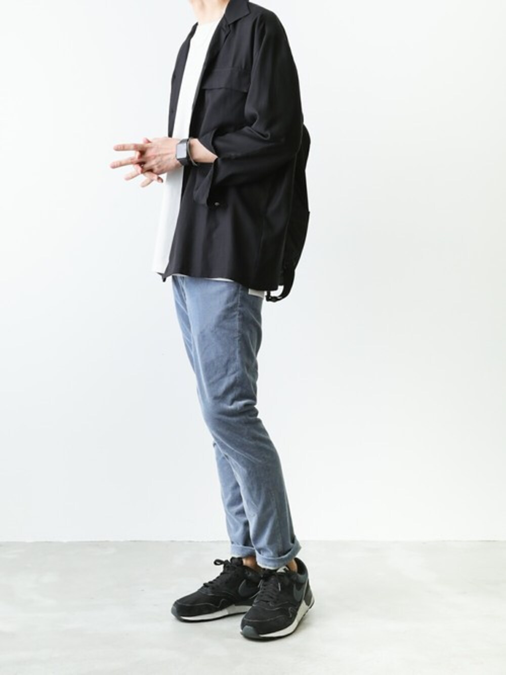 春のシャツスタイル。 シンプルなスタイルながら、サマーコーディロイのパンツで存在感をプラス。 デニムのような気軽さを持ちつつも、また違った雰囲気を放つ新しい定番ボトムス。